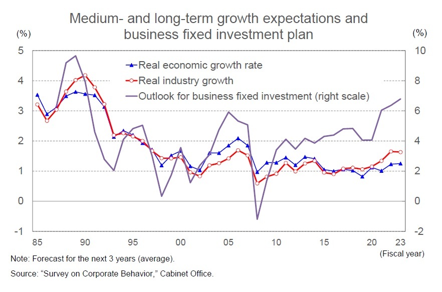 Figure 3 Medium- and Long-Term Growth Expectations and Business Fixed Investment Plan (%)